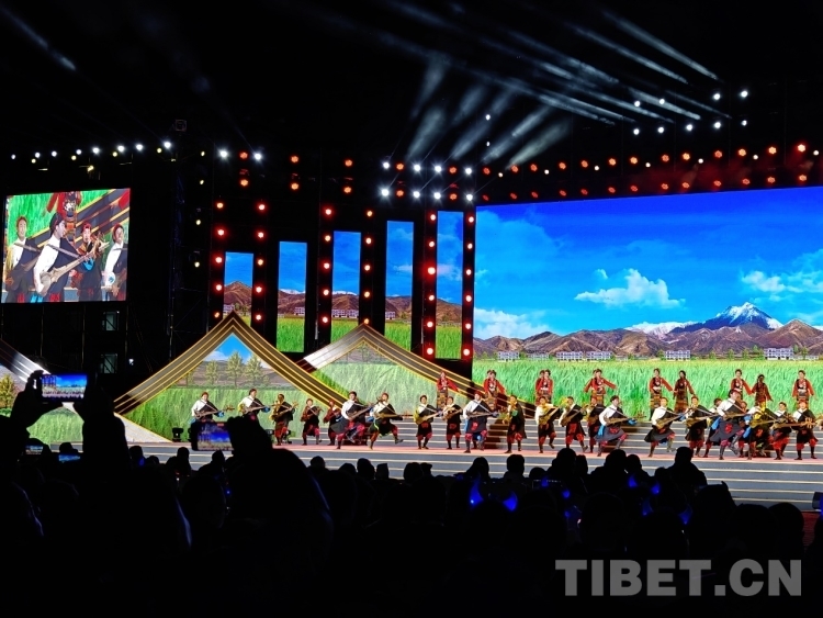 圖為文藝演出舞蹈《飛弦踏青》表現雪域兒女踏著新時代的節(jié)奏,快步邁向美好未來的信心與激情 攝影:次旦拉姆