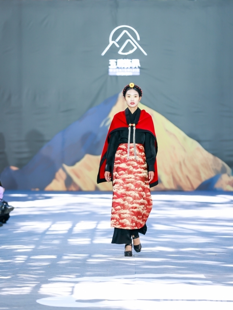 記者在現(xiàn)場了解到,月浮系列靈感來源于日喀則市亞東縣上亞東鄉(xiāng)、吉隆縣和謝通門縣的傳統(tǒng)服飾,以黑紅兩種基調為主。紅色代表智慧熱情,黑色象征著莊嚴與敬畏。云撫系列靈感來源于日喀則市薩迦縣、康馬縣和定日縣的傳統(tǒng)服飾,以大地色調為主,將自然的美妙展現(xiàn)在服飾創(chuàng)作之中。充滿溫暖和沉穩(wěn)的氛圍大地色,彰顯出人類與自然的和諧共處。其他系列也各自展現(xiàn)了日喀則的特色和魅力。