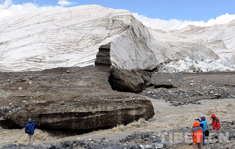 在雙湖縣境內(nèi)的普若崗日冰川,游客們在拍照游覽(唐召明2009年8月1日攝)