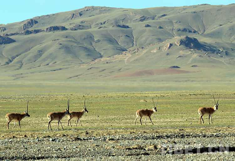 在羌塘國家級(jí)自然保護(hù)區(qū)悠閑漫步的國家一級(jí)保護(hù)動(dòng)物藏羚羊(唐召明2019年9月20日攝)