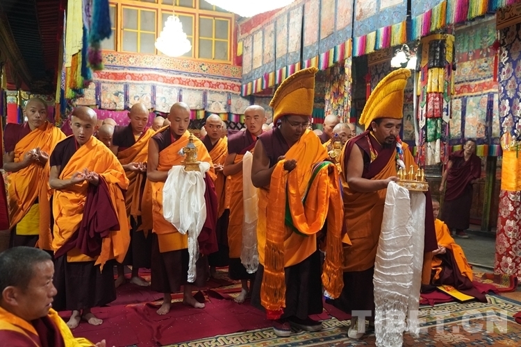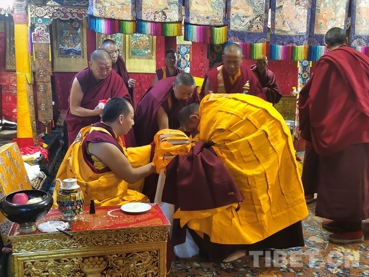 中國(guó)西藏網(wǎng)訊 11月4日,即藏歷九月二十二日是藏傳佛教傳統(tǒng)的“降神節(jié)”,降神節(jié)藏語(yǔ)稱“拉波堆慶”。在這特殊的日子里,全國(guó)政協(xié)常委、中國(guó)佛教協(xié)會(huì)副會(huì)長(zhǎng)、中國(guó)佛協(xié)西藏分會(huì)會(huì)長(zhǎng)班禪額爾德尼·確吉杰布,為日喀則市江孜縣重孜寺生欽·旦巴熱杰活佛授予比丘戒暨為扎什倫布寺部分年輕僧人傳授沙彌戒儀式在扎什倫布寺拉讓殿舉行。