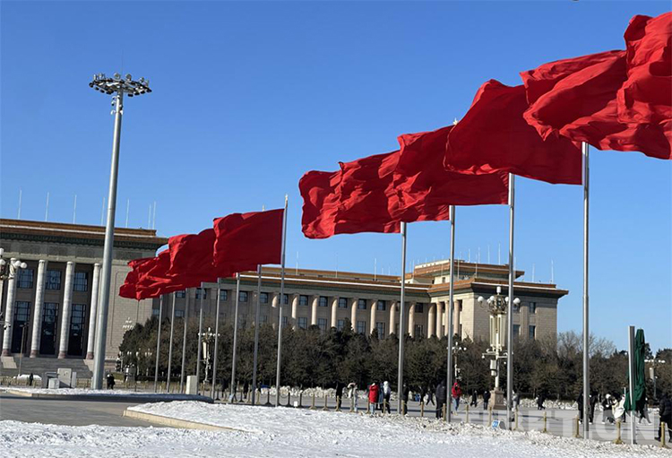圖為天安門廣場上迎風(fēng)飄揚(yáng)的紅旗 攝影:王妍丹