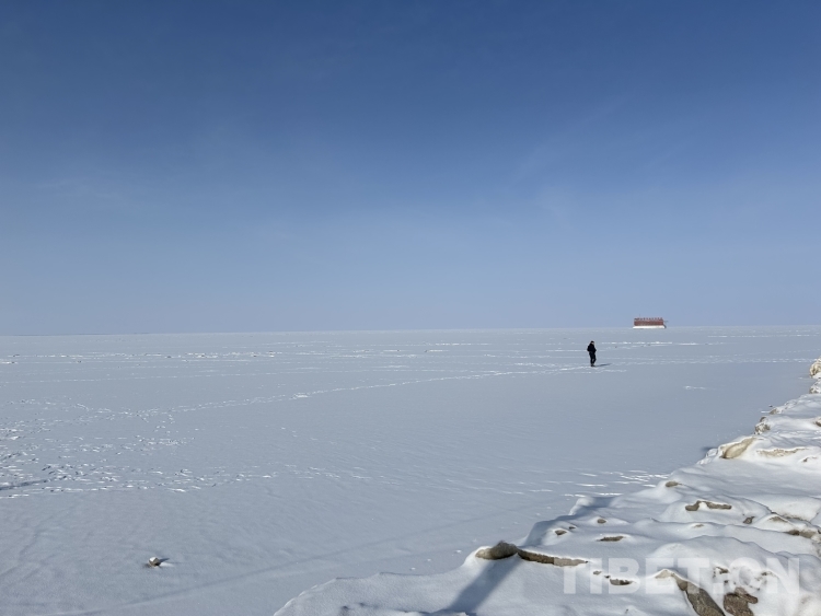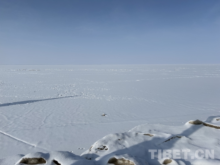 青海湖是我國面積最大的內(nèi)陸湖泊,湖岸線長約360公里。落雪后的湖面更是白茫茫一片,極目遠(yuǎn)眺,水與天相接。天地間十分安靜,只余不太溫柔的風(fēng)聲在耳側(cè)呼嘯而過。偶爾有游人在冰面走動(dòng),在白色的背景下顯得格外醒目。我們的無人機(jī)好像一只勇敢的沙鷗,翱翔在水天之間。(中國西藏網(wǎng) 文/李一凡 龍真多吉 張萌萌)