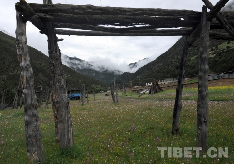 羊秀白嘎風(fēng)景區(qū)的美麗景觀?!疤K毗古遺址群落”就廣泛分布在這里。前面流淌的是杰曲河水(唐召明2014年7月9日攝)