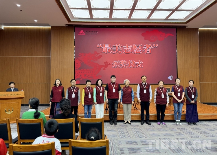 活動中還舉行了西藏文化博物館2023年度十大“最美志愿者”頒獎儀式。最美志愿者代表劉福剛表示,獲此殊榮十分激動,在西藏文化博物館當志愿者的兩年多時間里,已經(jīng)完全把自己與西藏這片高原熱土、與厚重的西藏歷史文化、與美麗的西藏文化博物館融為一體。