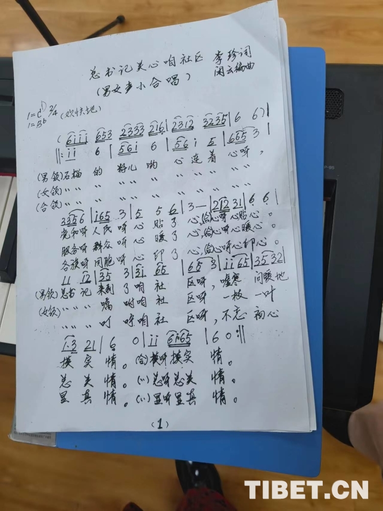 圖為《總書記關(guān)心咱社區(qū)》的曲譜