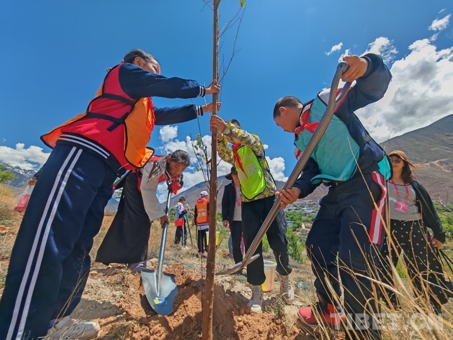 圖為四?。▍^(qū))市學(xué)生們?cè)谖鞑夭嫉耐恋厣瞎餐矘?shù)