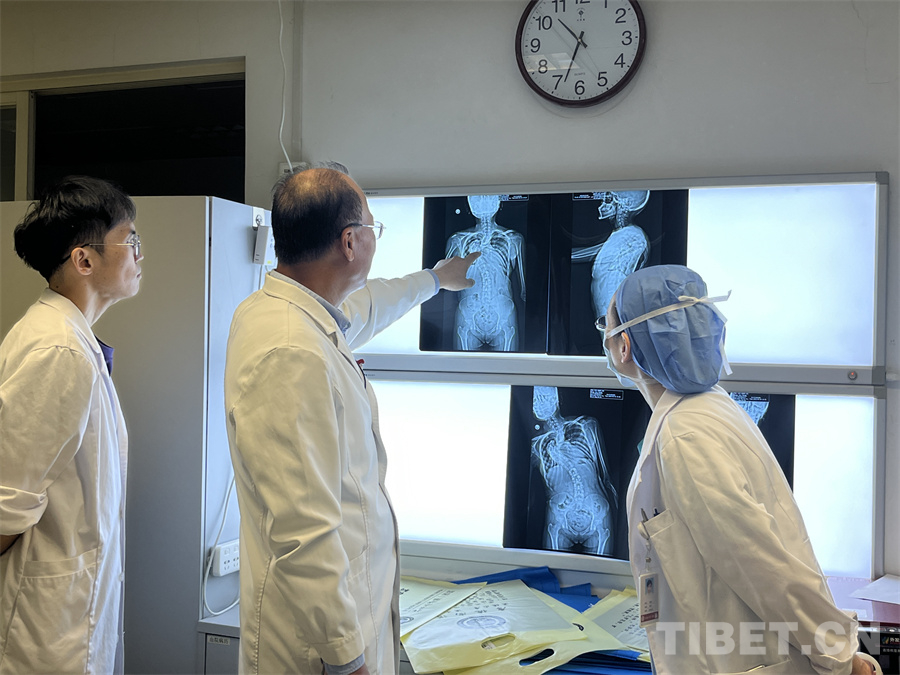 今年年初,李淳德完成了通過同心活動篩選來京治療的4名重度脊柱畸形的藏族患者的救治。其中,23歲的達(dá)瓦扎西,脊柱畸形后凸加側(cè)彎畸形,畸形程度扭轉(zhuǎn)了180度,再加上后凸畸形壓迫到內(nèi)臟,給患者的正常生活帶來巨大不便。