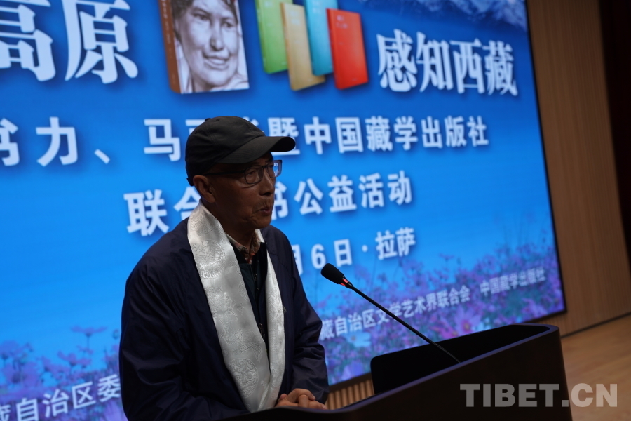 何瑞表示,在全區(qū)各族人民深入學(xué)習(xí)貫徹黨的二十大精神和習(xí)近平文化思想,深入推進(jìn)文化強(qiáng)區(qū)建設(shè)之際,西藏文藝界的老領(lǐng)導(dǎo)、老文藝家和中國(guó)藏學(xué)出版社送來的精神食糧和文藝大餐,如久旱夏日里的一場(chǎng)及時(shí)雨滋潤(rùn)心田,為西藏各項(xiàng)事業(yè)的高質(zhì)量發(fā)展注入鮮活的營(yíng)養(yǎng)液。書籍是點(diǎn)亮智慧的明燈,這次活動(dòng)捐贈(zèng)的是圖書,但孕育的是希望;幫助的是大家,但燃起的是夢(mèng)想。何瑞指出,推動(dòng)文藝繁榮發(fā)展,歸根到底是要出作品、出精品,出大作、出力作。希望廣大文藝工作者以捐贈(zèng)公益活動(dòng)為契機(jī),將作品作為立身之本,重視和加強(qiáng)現(xiàn)實(shí)題材創(chuàng)作,創(chuàng)作更多經(jīng)得起歷史和人民檢驗(yàn)的精品力作,讓奮進(jìn)中的全區(qū)各族人民在文藝中看到自己的身影,從而受到激勵(lì)和鼓舞。