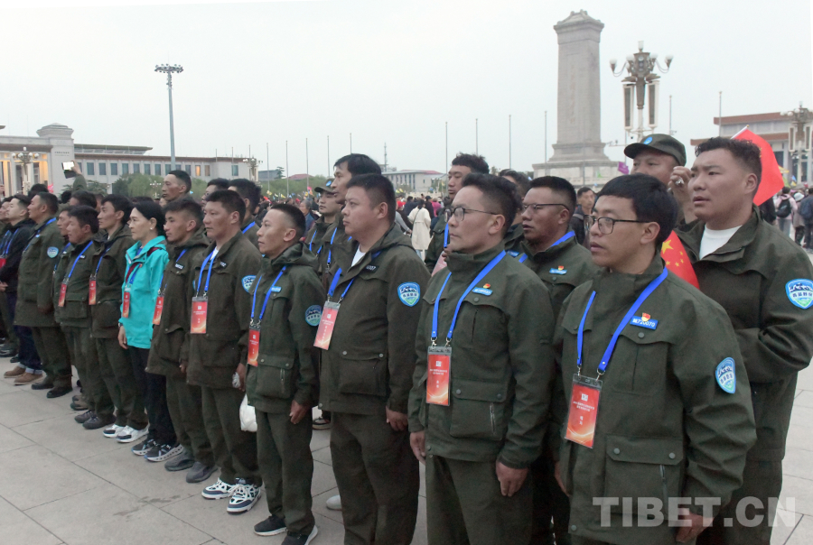 當(dāng)日凌晨,懷著萬(wàn)分激動(dòng)的心情,來(lái)自西藏羌塘、珠穆朗瑪峰國(guó)家級(jí)自然保護(hù)區(qū)的野保員一大早就來(lái)到了天安門廣場(chǎng),等候國(guó)旗冉冉升起的那一刻。