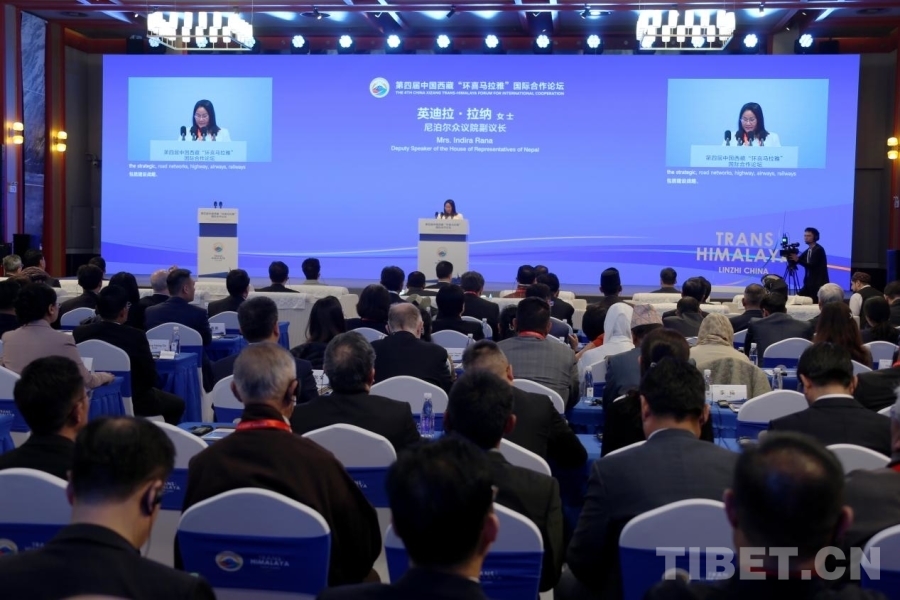 圖為第四屆環(huán)喜論壇開幕式暨主旨論壇上尼泊爾眾議院副議長英迪拉·拉納致辭 攝影:王佳豪