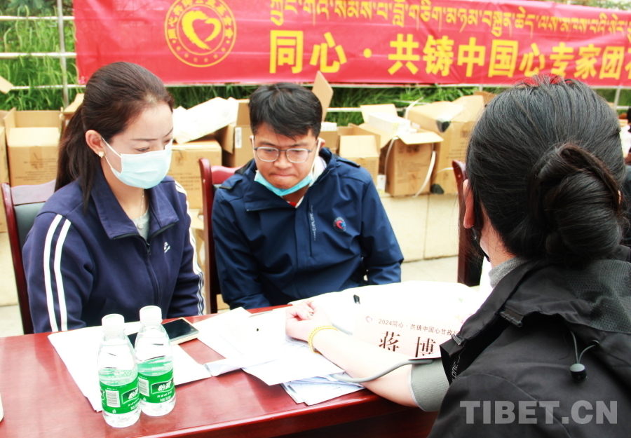 圖為2024“同心·共鑄中國(guó)心”甘孜行大型公益活動(dòng)石渠縣義診現(xiàn)場(chǎng),中國(guó)人民解放軍總醫(yī)院第一醫(yī)學(xué)中心心血管內(nèi)科副主任醫(yī)師蔣博正在觀察患者血壓 攝影:劉莉