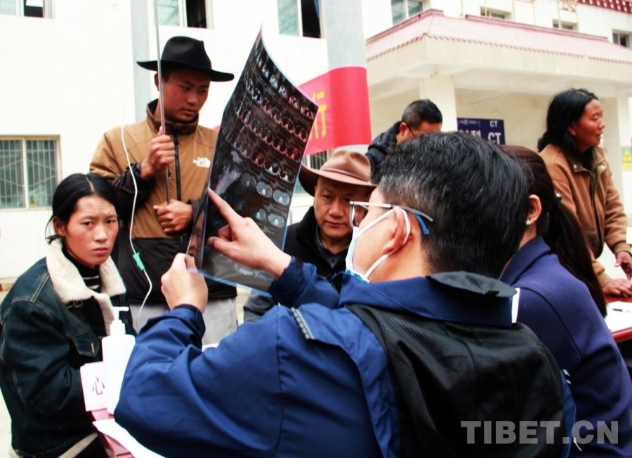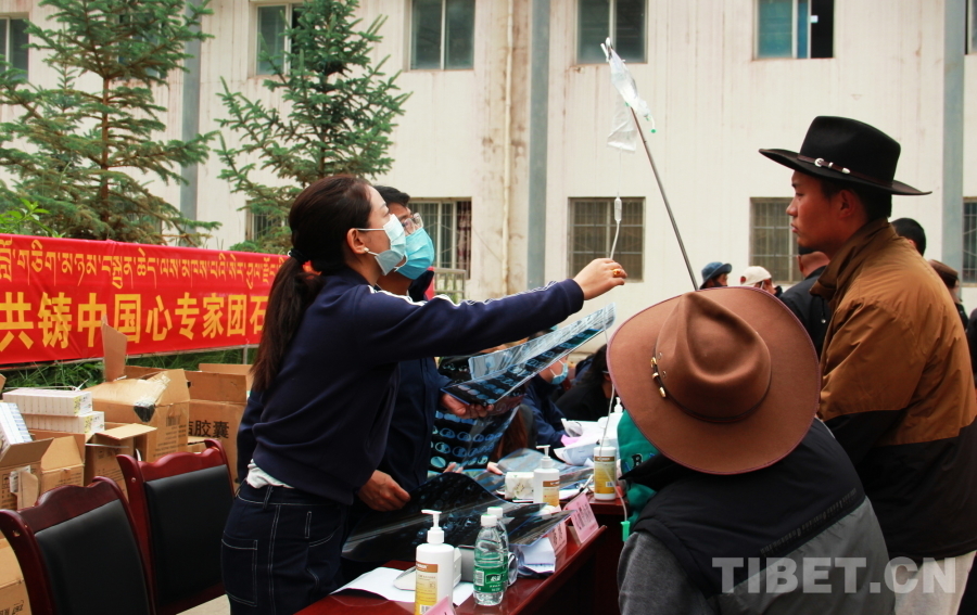 圖為2024“同心·共鑄中國(guó)心”甘孜行大型公益活動(dòng)石渠縣義診現(xiàn)場(chǎng),中國(guó)人民解放軍總醫(yī)院第一醫(yī)學(xué)中心肝膽胰外科主任醫(yī)師王兆海正在查看患者帶來的片子 攝影:劉莉