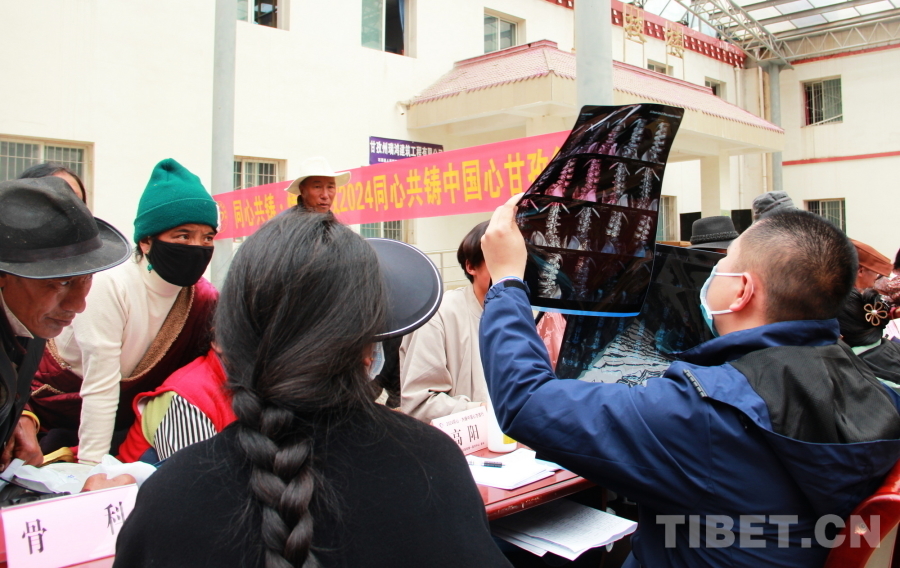 圖為2024“同心·共鑄中國(guó)心”甘孜行大型公益活動(dòng)石渠縣義診現(xiàn)場(chǎng),中國(guó)人民解放軍總醫(yī)院第一醫(yī)學(xué)中心骨科副主任醫(yī)師高陽正在查看患者帶來的片子 攝影:劉莉