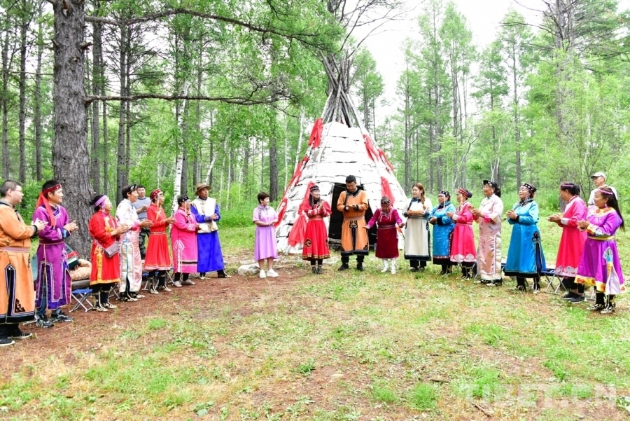 圖為鄂倫春族人民盛裝歡迎遠(yuǎn)方的來賓