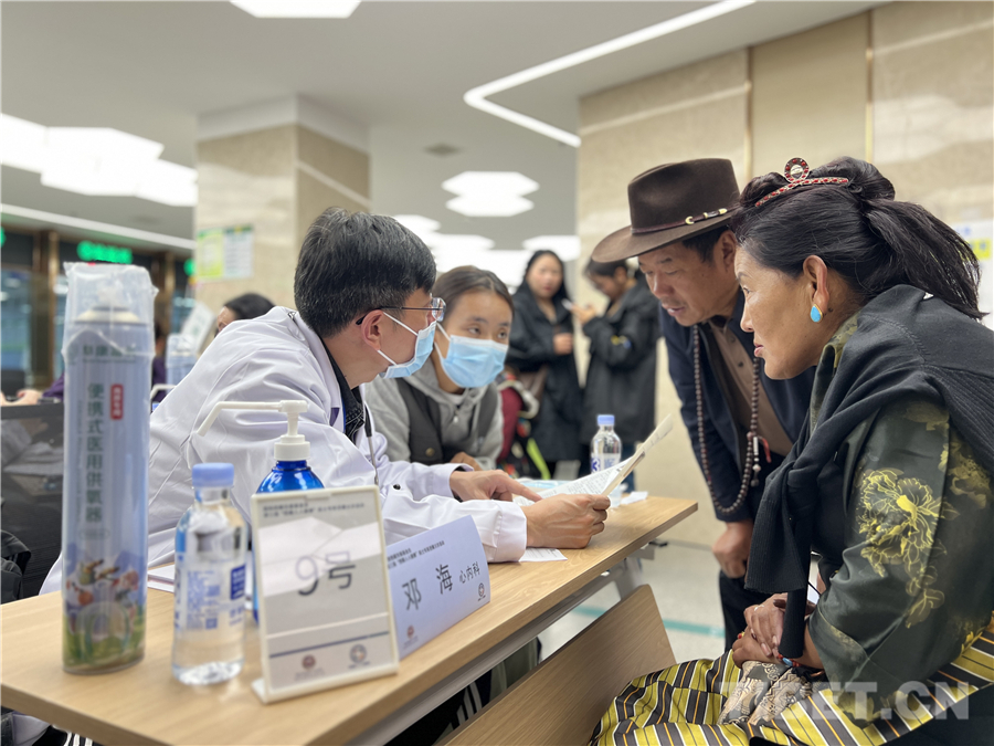 15日上午,在西藏阜康醫(yī)院早已布置好的義診點,來自全國各地的院士專家對號入座,每個人旁邊還安排了一位翻譯,一切準備就緒。前來咨詢、問診的患者根據(jù)自身需求排隊等待咨詢、檢查。現(xiàn)場醫(yī)護人員耐心傾聽市民群眾講述自己的病癥,為他們測量血壓、把脈,叮囑他們做好疾病調(diào)治、身體保健和疾病預防等事宜。同時,為就診者仔細檢查,為有需要的就診者提供病情診斷、用藥指導。