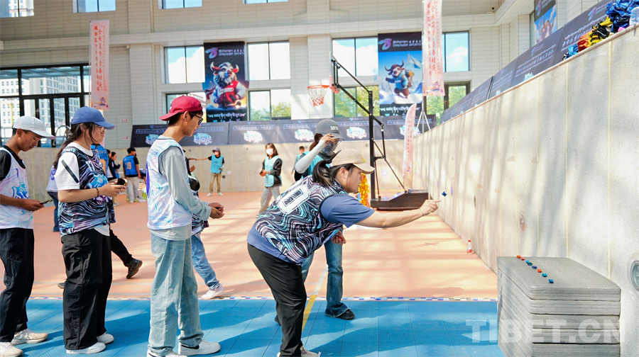 “投壺是中國古代宴飲時(shí)做的一種投擲游戲,也是一種禮儀。愛看古裝劇的人應(yīng)該都在影視作品里看過,這是一個(gè)由游戲者輪流站在離壺一定距離的地方,用手把箭投向壺中并計(jì)算得分的游戲。”“打牛角和阿久(羊拐)是一項(xiàng)流傳至今的西藏古老民間傳統(tǒng)體育活動(dòng),具有很強(qiáng)的娛樂性、趣味性和技巧性,能夠鍛煉身體,還能給我們帶來參與其中的快樂……”每項(xiàng)活動(dòng)開啟前,晉美次旦向現(xiàn)場參與人員一一講解這項(xiàng)運(yùn)動(dòng)的由來以及發(fā)展現(xiàn)狀,大家聽得十分認(rèn)真,隨后又積極參加各項(xiàng)活動(dòng)。活動(dòng)現(xiàn)場熱鬧非凡、歡聲笑語不斷,營造了濃厚的健身氛圍。