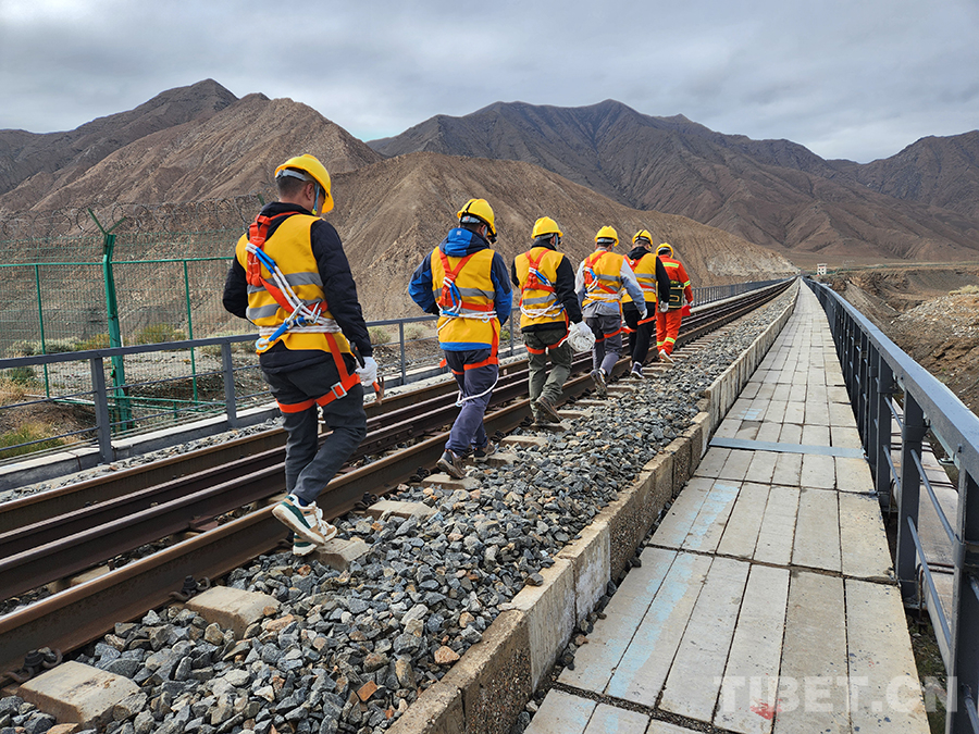 中國西藏網(wǎng)訊 9月28日,在青藏鐵路三岔河特大橋上,中國鐵路青藏集團(tuán)公司格爾木工務(wù)段8名橋隧工正在給橋梁做“體檢”,進(jìn)行一年一度的橋墩檢修工作。