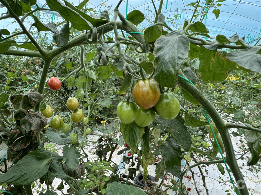 圖為大棚內無土栽培即將成熟的圣女果 攝影:王妍丹