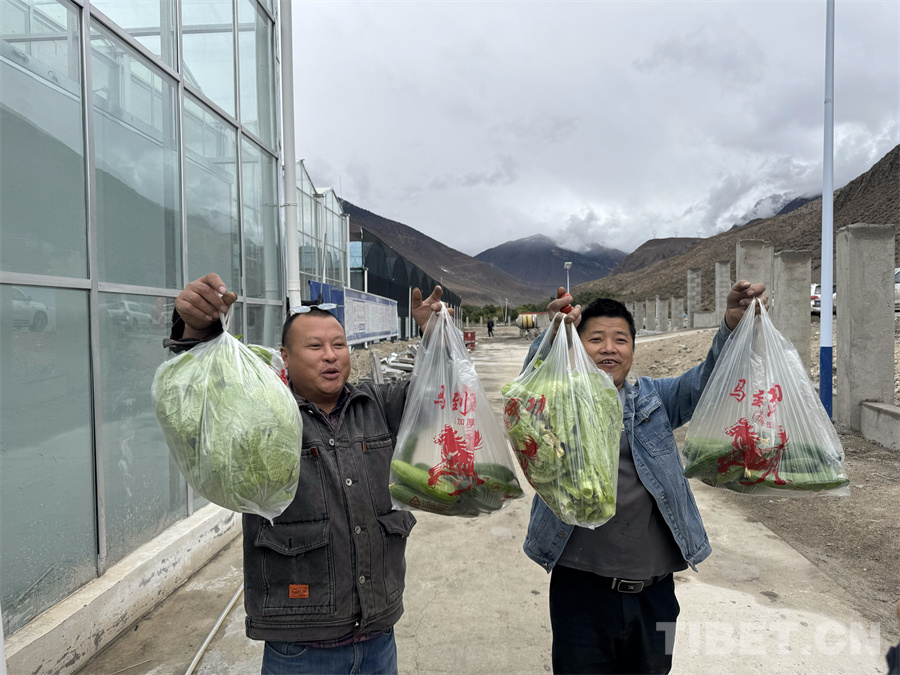 圖為八宿縣白瑪鎮(zhèn)附近的村民順路購買大棚內成熟的蔬菜瓜果 攝影:王妍丹
