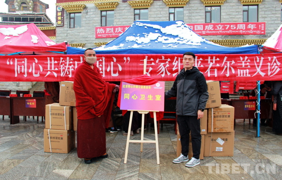 中國(guó)西藏網(wǎng)訊 10月26日,由北京同心共鑄公益基金會(huì)與若爾蓋郎木寺藏醫(yī)院共同成立的“同心衛(wèi)生室”在四川省阿壩藏族羌族自治州若爾蓋縣揭牌。若爾蓋縣委統(tǒng)戰(zhàn)部有關(guān)領(lǐng)導(dǎo)出席了揭牌儀式。