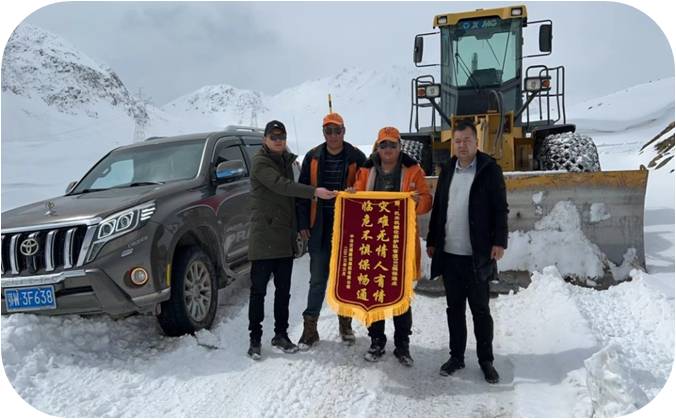 隨著川配項目的進駐,我們負責管養(yǎng)的S303線,過往車輛70%為川配項目物資運輸車輛。2023年3月1日,中冶交通建設(shè)集團有限公司翻越果扎拉山,將一面寫著“災(zāi)難無情人有情,臨危不懼保暢通”的錦旗送到了我們4名保通員手中。他們說,每每經(jīng)過果扎拉山,白茫茫一片公路,其中閃現(xiàn)著橘色的身影,既讓他們心安,又讓他們心疼,更讓他們佩服。來西藏前,他們只是聽說過“兩路”精神、老西藏精神,進入施工后,才懂得那橘色的身影就是“兩路”精神的化身。