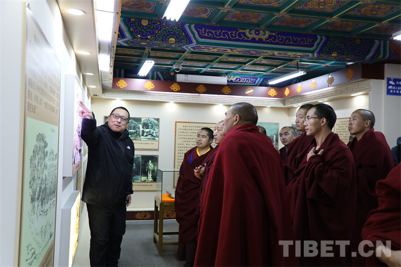 圖為西藏佛學(xué)院一行參觀西黃寺內(nèi)展覽 攝影:王茜