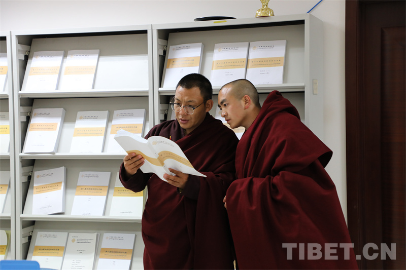 學(xué)員們?cè)诃h(huán)境雅致、設(shè)施完善的中國藏語系高級(jí)佛學(xué)院圖書館里“打卡”。該圖書館擁有豐富的藏文文獻(xiàn)資源,為學(xué)員們提供了舒適的交流場所和學(xué)習(xí)環(huán)境。西藏佛學(xué)院的學(xué)員們也紛紛投入知識(shí)的海洋進(jìn)行閱覽。