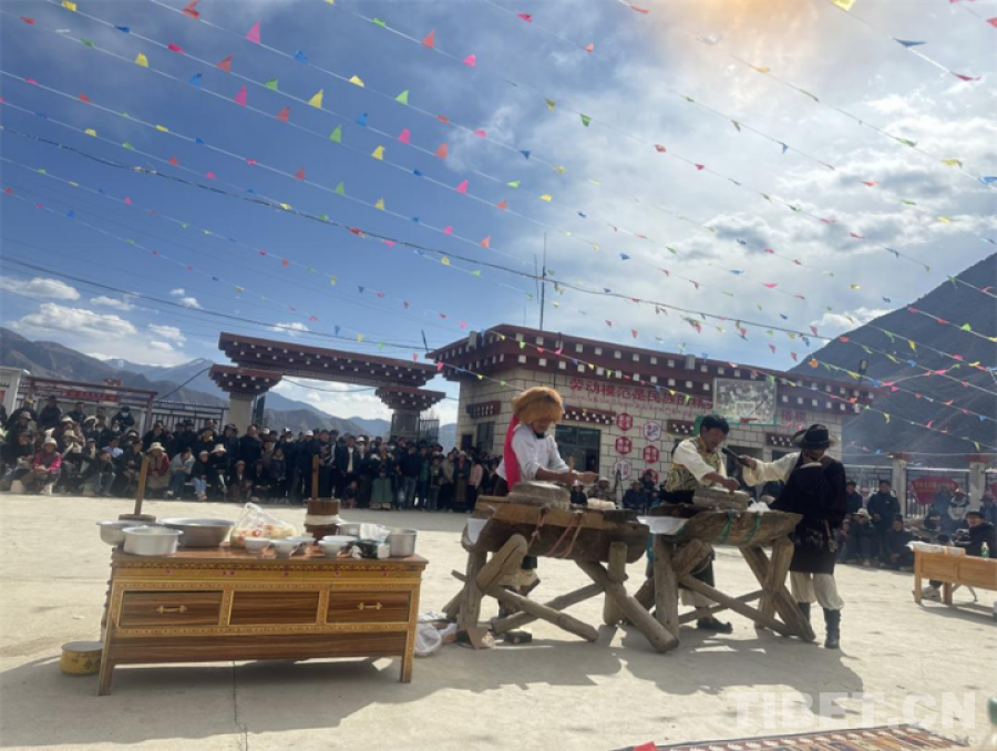 圖為洛隆縣俄西鄉(xiāng)次瓊村開展“紅色昌都·振興奮進(jìn)”“麥韻匠心”手磨糌粑技能大賽