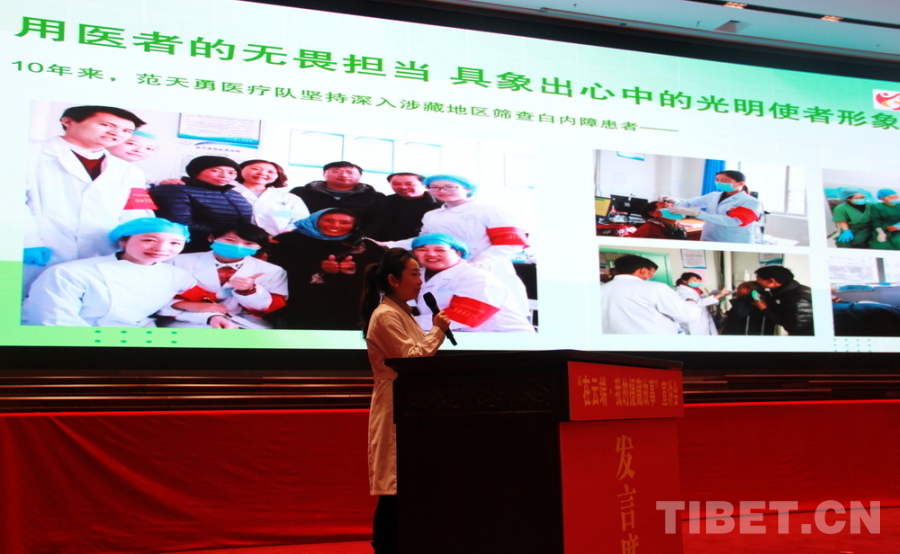 圖為德陽市人民醫(yī)院宣傳部干事彭曉萌講述該院“范天勇援藏醫(yī)療服務(wù)隊”的援藏故事 攝影:劉莉