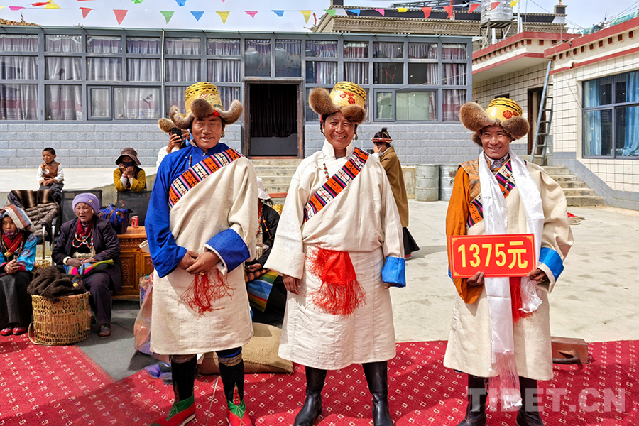 當(dāng)村民代表們依次上臺領(lǐng)取分紅時,臉上洋溢著幸福的笑容,現(xiàn)場掌聲、歡笑聲此起彼伏?!傲_薩扎西德勒!這是您家的分紅款!”定結(jié)鄉(xiāng)黨委副書記、鄉(xiāng)長高文雄為75歲的央金老人獻(xiàn)上了潔白的哈達(dá)表達(dá)自己的祝福......長桌上,象征吉祥的“卡塞”油炸點(diǎn)心、青稞酒擺成“豐收塔”,村主任邊珍舉著賬本高聲報喜:“去年我們村靠合作社掙了錢,家家戶戶都能過個‘豐收年’!”