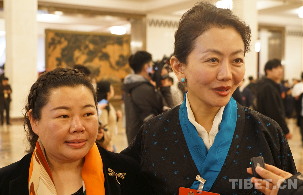 圖為全國(guó)政協(xié)委員邊巴拉姆(右一)接受記者采訪(fǎng) 攝影:楊眉笑