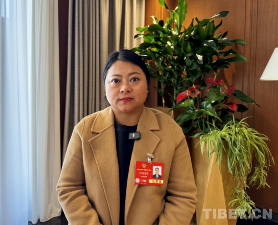 圖為兩會(huì)期間,白瑪玉珍接受中國(guó)西藏網(wǎng)記者采訪