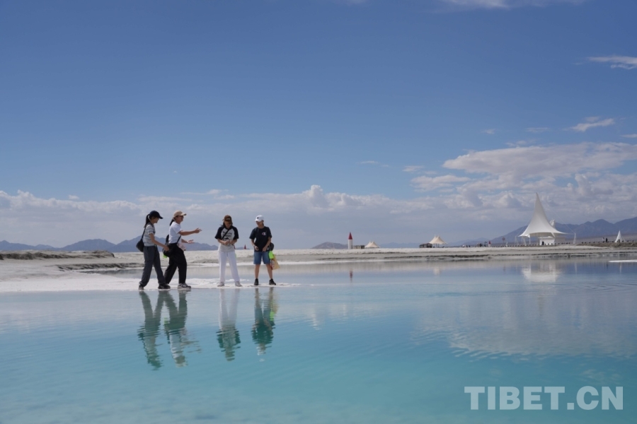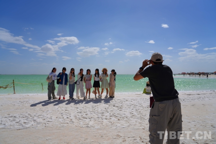 在海西蒙古族藏族自治州格爾木市,海拔2670米的察爾汗鹽湖,翠綠之美令人震撼,風起波動,湖面如碎鉆鋪就的星河;天然形成的鹽花形態(tài)各異宛如珊瑚叢生,在陽光下,閃耀著璀璨的光芒;浮在鹵水上的“萬丈鹽橋”延伸至天際,橫跨湖面,還有周邊的現(xiàn)代化采鹽船,輸鹵管道,車來車往,工業(yè)設施與自然景觀形成強烈對比。來自妙法寺劉金龍中學三位女生欣賞著美景,也紛紛討論這次令人驚嘆的“自然課堂”。鐘澄情同學不自禁感慨:“這里跟網(wǎng)上宣傳的一樣美!就像是上帝打翻的蘋果汁?!痹袂缤瑢W驚嘆道:“曾經(jīng)我只聽說過茶卡鹽湖,來到這里才知道察爾汗鹽湖是中國最大、世界第二大的鹽湖,面積相當于56個茶卡鹽湖,鹽儲量可以讓全球80億人吃上兩千年?!倍S馨月同學更加震撼這里工業(yè)與自然相互交融的獨特魅力,直呼這是一座真正的“寶庫”!