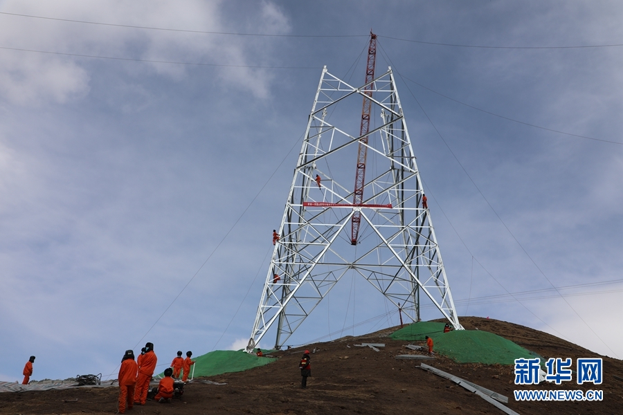 青?!幽稀?00千伏特高壓工程甘肅段進入鐵塔組立