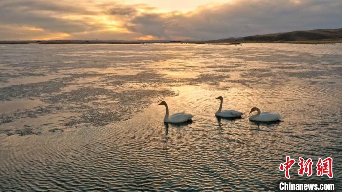 從西伯利亞飛來的大天鵝。若爾蓋縣融媒體中心供圖 攝