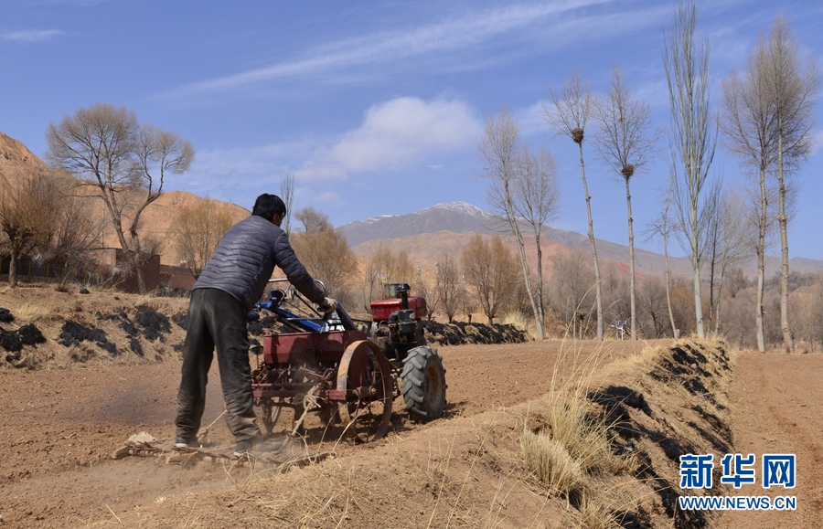 圖為青海省海南藏族自治州貴德縣尕讓鄉(xiāng)俄加村的村民正在耕地播種。新華網(wǎng) 李崇軒 攝