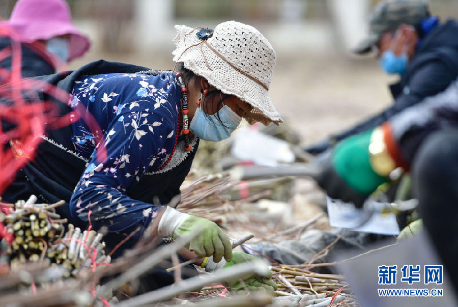 在青海省玉樹藏族自治州高原千畝林木良種繁育實(shí)驗(yàn)基地,當(dāng)?shù)厝罕娫谇げ逵纾?月29日攝)。新華社記者 張龍 攝
