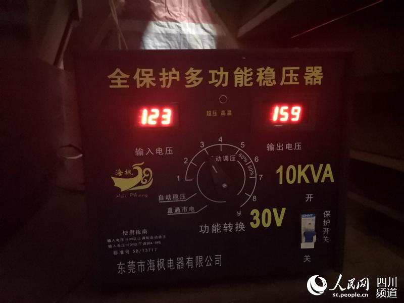 據(jù)當(dāng)?shù)氐拇甯刹拷榻B,5月是一年中村里“燈泡最亮”的時(shí)間,因?yàn)榇蟛糠秩硕汲鋈ネ谙x草了,全村的用電負(fù)荷并不高。事實(shí)上,燈泡還是只有很低的亮度,幾十平方的客廳用了一盞200瓦的燈泡還是很昏暗,電壓明顯不足。在阿曲大叔家里,記者看到一臺在平原地區(qū)已經(jīng)是“古董”的電器——全保護(hù)多功能電壓穩(wěn)壓器,這可是當(dāng)?shù)卮迕竦募壹冶貍?,上面顯示著:輸入電壓123伏,輸出電壓159伏,遠(yuǎn)遠(yuǎn)達(dá)不到220伏的標(biāo)準(zhǔn)電壓。阿曲大叔家的電飯煲、電磁爐、冰箱、電視機(jī)等電器,都沒法正常啟動(dòng)。
