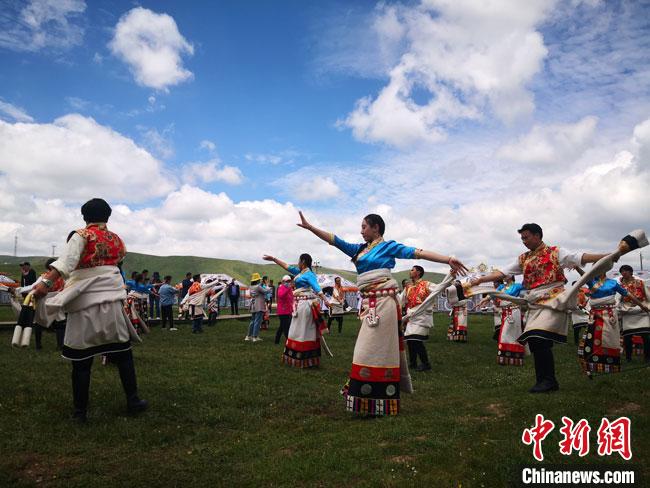 6月下旬,藏族青年男女在尕秀村帳篷城載歌載舞。馮志軍 攝
