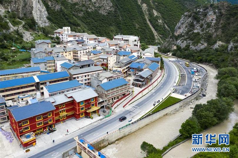 九寨溝地震震中九寨溝縣漳扎鎮(zhèn)新貌(無人機照片,6月18日攝)。新華社記者 劉坤 攝