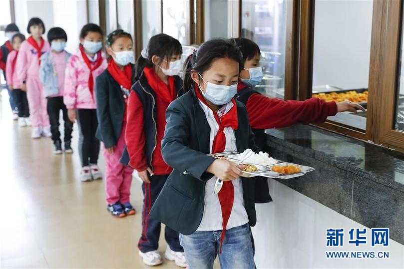 四川省阿壩藏族羌族自治州九寨溝縣九寨溝小學(原漳扎鎮(zhèn)小學)的學生在食堂排隊打飯(6月18日攝)。 新華社記者 沈伯韓 攝