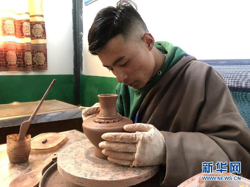 “去年,我們工藝廠實現(xiàn)收入40多萬元,給前來學習藏黑陶技藝的農牧民發(fā)放工資20多萬元,讓30多名貧困戶增加了收入?!?/p>