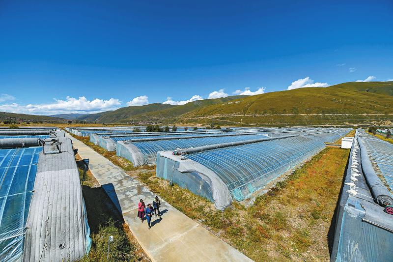 爐霍縣斯木鎮(zhèn)吉絨村飛地產(chǎn)業(yè)園區(qū),按照“土地集中、各村飛地、龍頭經(jīng)營(yíng)、入股分紅”思路建起的蔬菜大棚基地。四川日?qǐng)?bào) 楊樹 攝