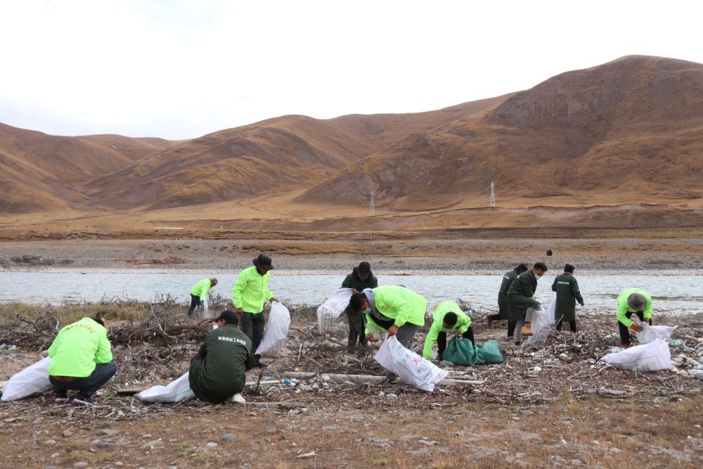 高原冬日,青海省玉樹藏族自治州治多縣多彩鄉(xiāng)境內(nèi),遠(yuǎn)處巍峨的雪山腳下,廣袤的草原早已褪去青色,許多綠色的身影活躍在草地上,一個(gè)個(gè)遺棄的塑料瓶、食品袋被他們撿起,寂靜的草原變得生動(dòng)起來。