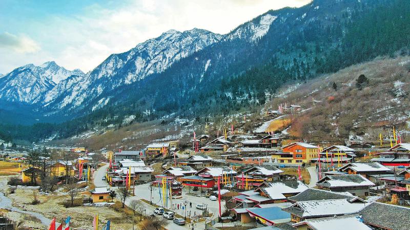 中查村境內(nèi)有一條長(zhǎng)約10公里、寬3公里的峽谷——中查溝。其中,巍峨的雪峰、五彩斑斕的彩林、潺潺不息的溪流……美不勝收,為這里收獲了“九寨溝后花園”的美譽(yù)。2013年起,魯能集團(tuán)在這里投資建設(shè)九寨·魯能勝地項(xiàng)目。