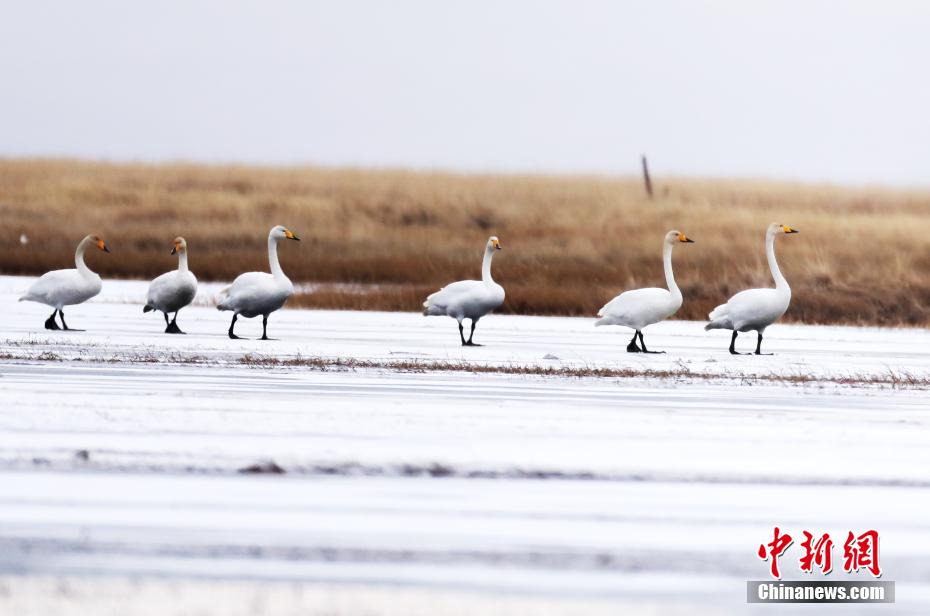 四川若爾蓋:近百只“白色精靈”棲息越冬