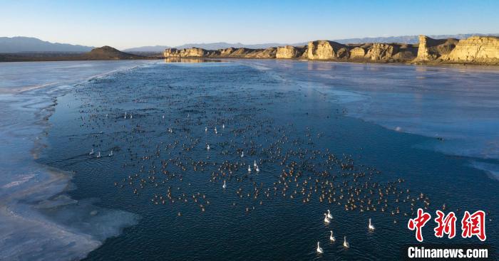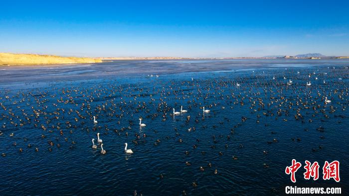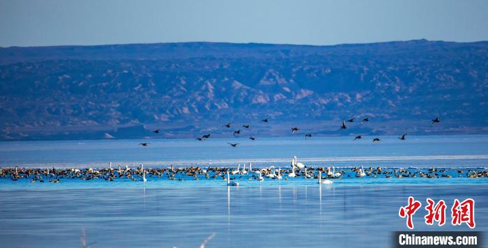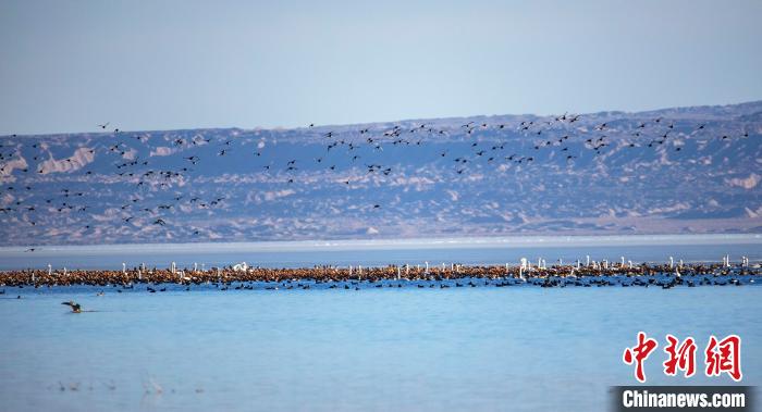 2021年2月2日是第25個“世界濕地日”,地處柴達木盆地的可魯克湖-托素湖濕地自然保護區(qū)也引來了萬鳥棲息的壯觀奇景。從可魯克至托素湖的河道到托素湖入水口處,放眼望去,萬鳥棲息,美麗的天鵝如鶴立雞群,點綴著湖面。同時近萬只赤嘴潛鴨等野生鳥類也在此棲息??靵碜鎳熬蹖毰琛笨带B呀。