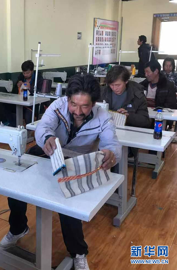 在青海省果洛藏族自治州瑪沁縣的扶貧產(chǎn)業(yè)孵化園內(nèi),贊根村村民在制作手工藝品(2020年11月9日攝)。新華社發(fā)