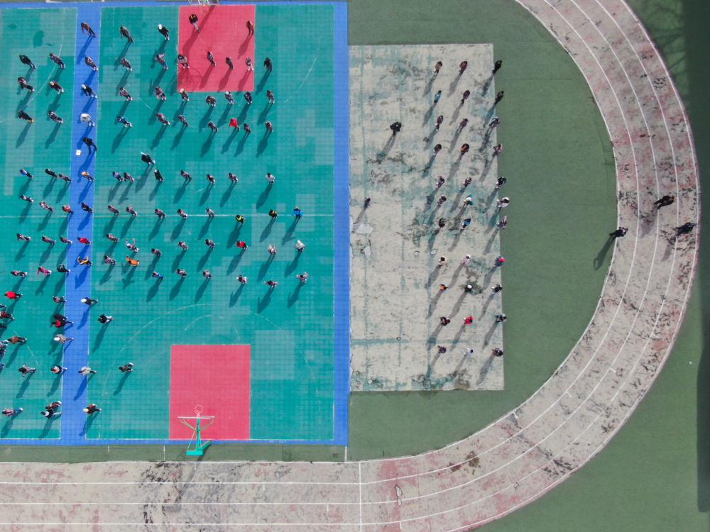 在青海省玉樹藏族自治州八一孤兒學(xué)校,學(xué)生們在進行課間活動(2020年4月3日攝)。 新華社記者 張龍 攝